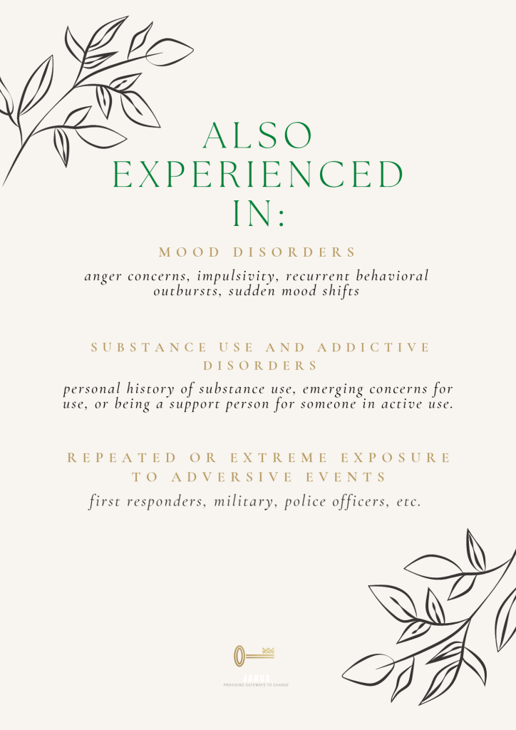 Attachment-Based Therapy, Client-Centered Therapy, Cognitive Behavioral Therapy (CBT), Dialectical Behavior Therapy (DBT), Mindfulness Therapy, Motivational Interviewing, Solution-Focused Therapy, Trauma-Focused Therapy